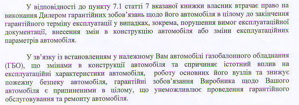 Подниму темку! Вобщем отказали мне официальным письмом, ссылаясь на 7.1 статьи 7 указанной в сервисной книжке авто, про переоборудование авто из-за ГБО.