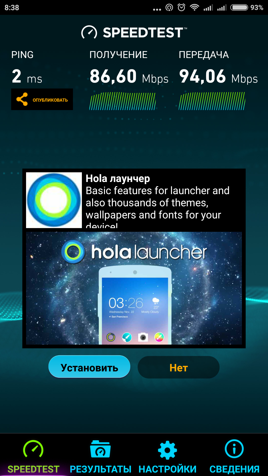Вчера вечером поковырял настройки. Результат по Wi-Fi вот