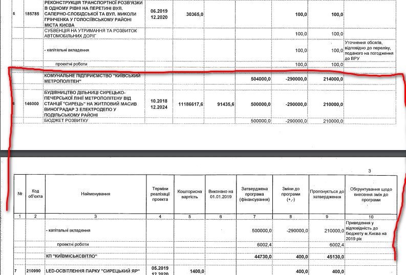 додатково врахувати кошти в сумі 500 000 000 гривень на капітальні вкладення з урахуванням вимог Закону України «Про Державний бюджет України на 2019 рік» в частині будівництва дільниці Сирецько-Печерської лінії метрополітену від станції «Сирець» на житловий масив Виноградар з електродепо у Подільському районі». страница