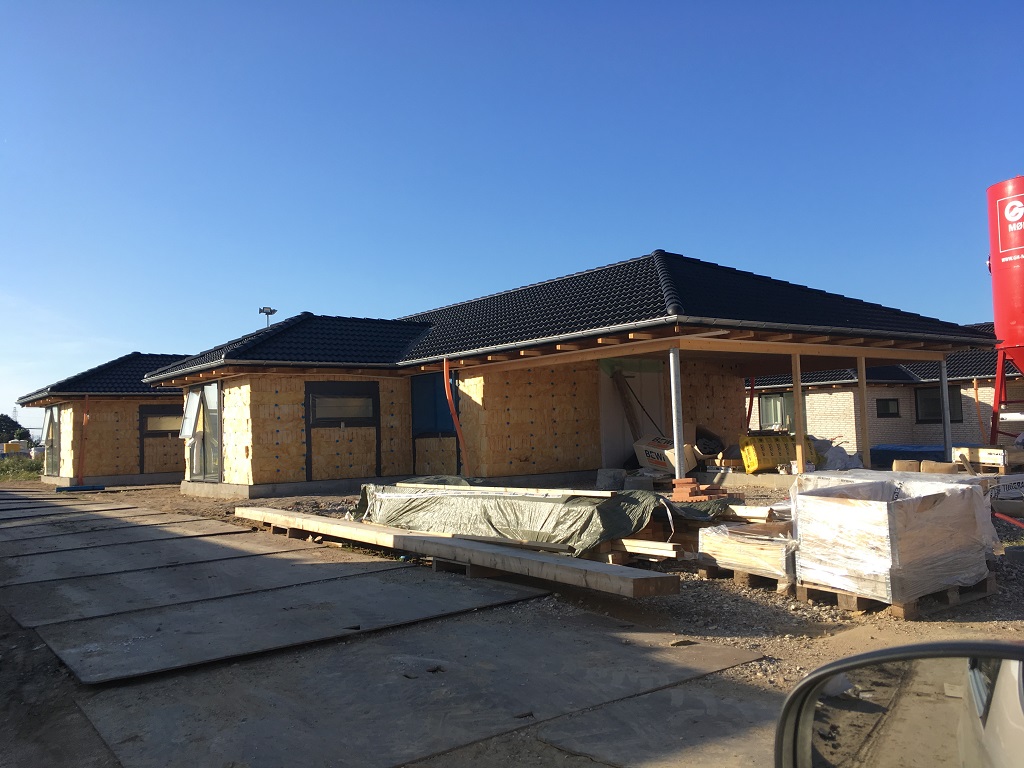 Особливості будівництва: на чорнових роботах – поляки, на чистових – данці. Підрядники працюють бригадами, приїздять щоранку на власних бусіках, де в них є все – від спецодягу та інструментів до кавоварки. Починають ДУЖЕ рано – о шостій ранку взимку, під прожекторами – і так само рано закінчують, після 15ї години нікого вже нема. Всі матеріали завозять централізовано, логістика працює як годинник – все розкладене за номерами будинку, приходять комплекти «газобетон в пачках – дерево в пачках – плитка в пачках»), все підписане, з маркуванням (всі матеріали – данські, наш забудовник – це міцний «середній клас» і за ціною, я за якістю – є дешевші, де будуть виключно поляки з польських матеріалів, є й значно дорожчі – де повний люксус).