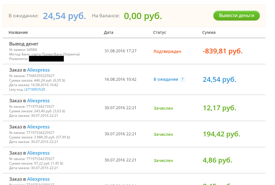 dotzent 14.09.2016 23:34 пишет: папа Женя 08.09.2016 11:28 пишет: letyshops Недавно первый раз вывел деньги на карту привата. Для алиэкспресс обещают 5%. Это нормально? Или есть лучший реально работающий кэшбек для алиекспресс? https://cashback.epn.bz/ru/ юзаю для алиэкспресса,7%. нет минимальной суммы вывода,начисляют и вывод на вебмани почти мгновенно.