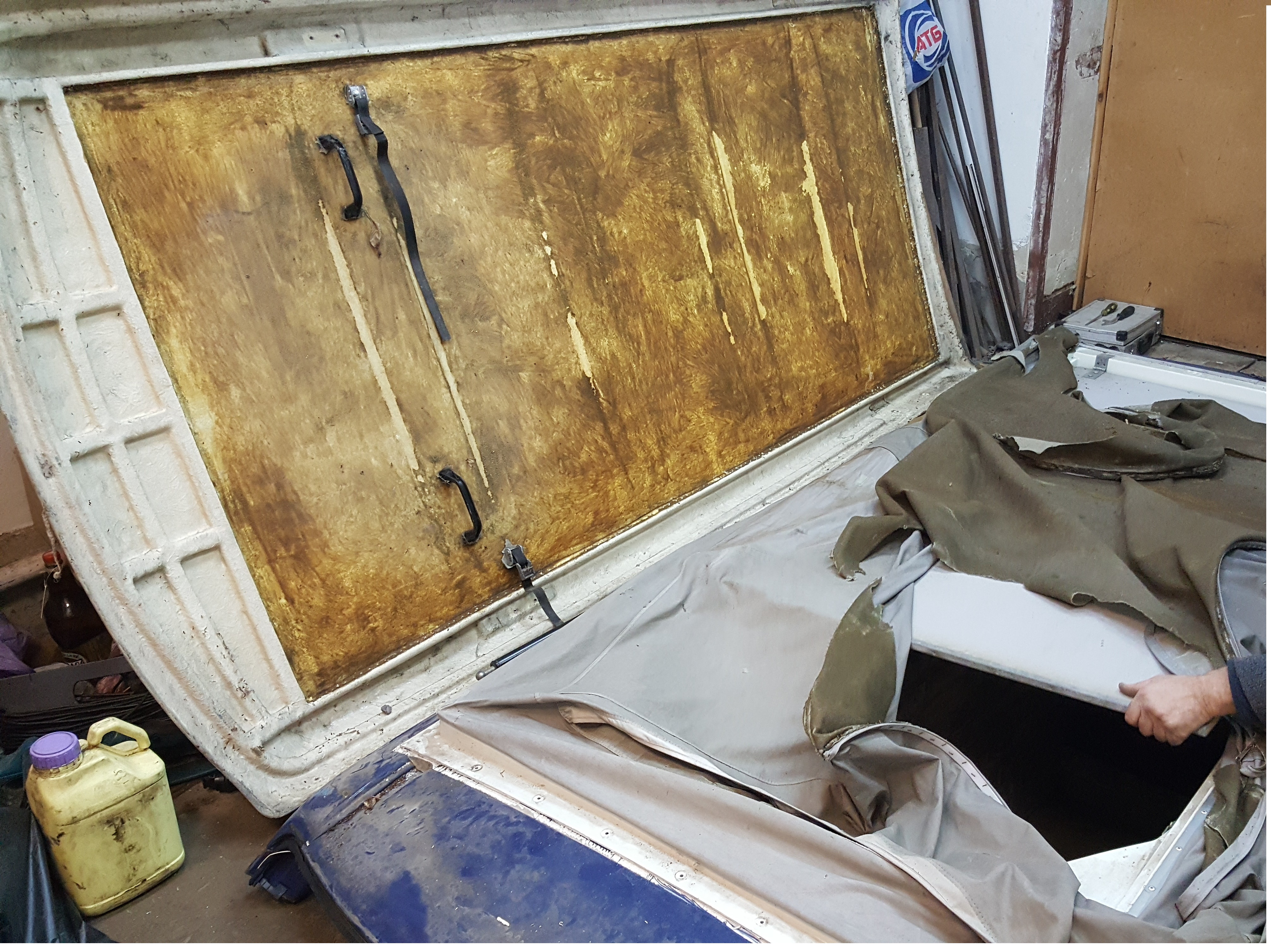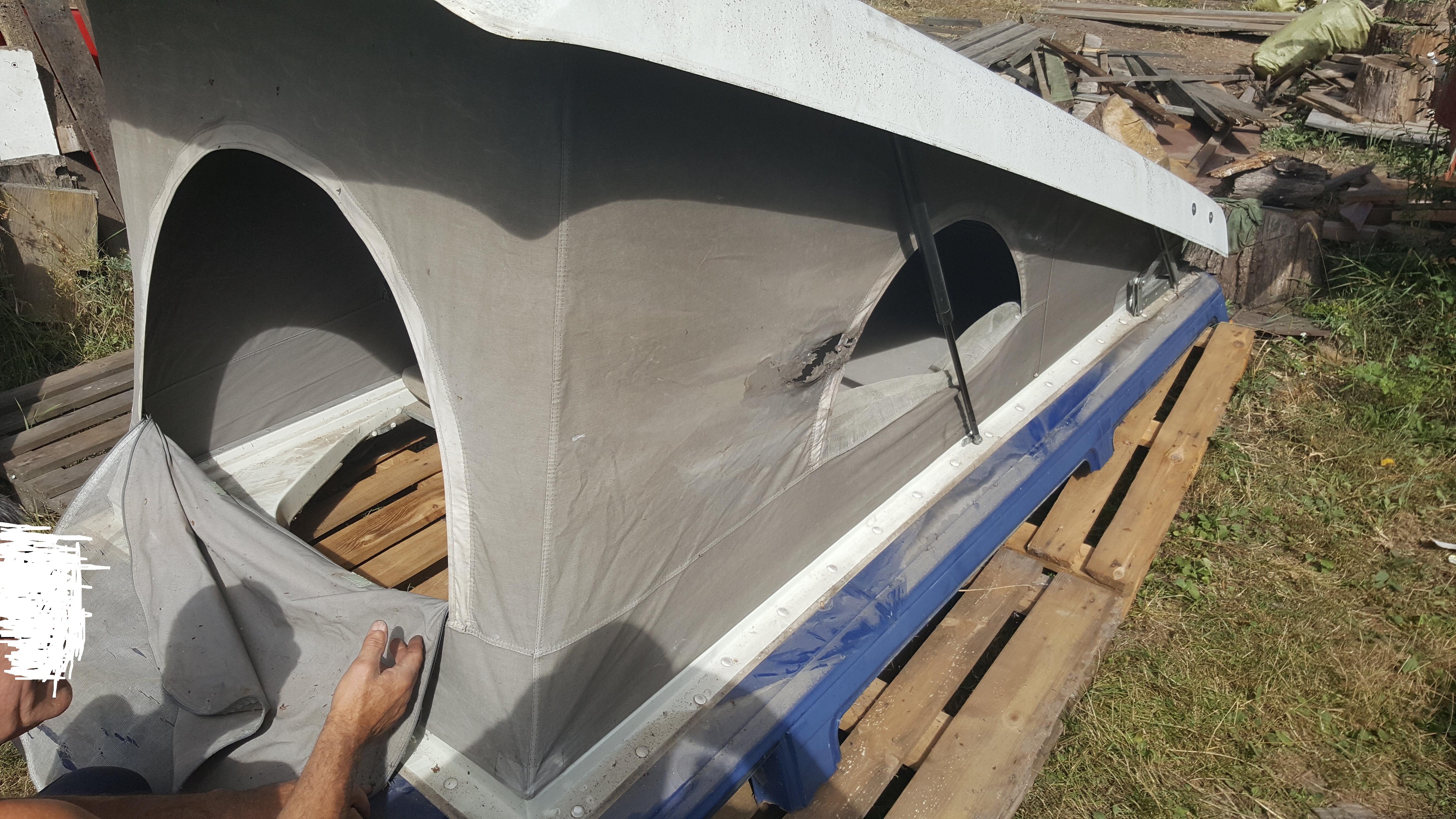 Эта штука называется POP-TOP WESTFALIA если я ничего не напутал Как видно, по фото, там есть проблемы с тентовой частью, пару дырок, уставшая от времени москитка, и полностью разорванная задняя стенка, та что у ног. Буду очень благодарен за любую наводку где можно перешить по бюджетнее саму палатку, старую я демонтировал- будет как лекало. Сегодня провозившись 5 часов мы имеем такой вид