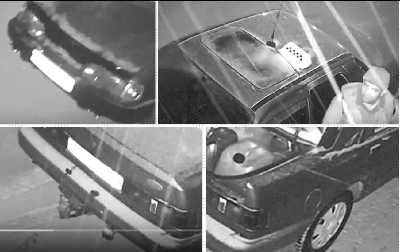 Особливі прикмети Ford Sierra sedan: - мухобійка на капоті; - характерні протитуманки під переднім бампером; - люк на даху авто; - дефлектори передніх бокових вікон, тонування; - причіпний пристрій під заднім бампером з окремо винесеною фішкою роз’єму (справа); - характерні декоративні ковпаки на колесах. Роздрукую цю фотку та прихоплю з собою у авто. Можливо, попадеться цей таксист колись на очі…