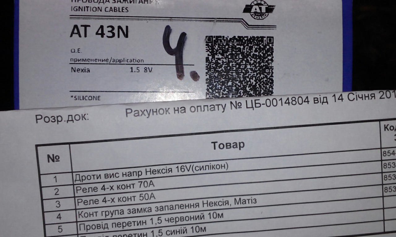 у тебя на фото видно коробку с маркировкой AT 43N AT 43N Провода в/в daewoo nexia 16v silicone (962 119 48)