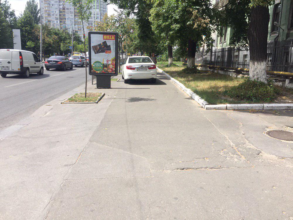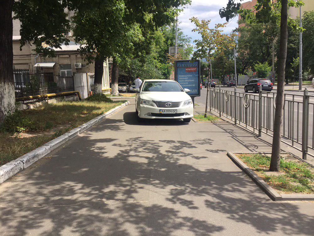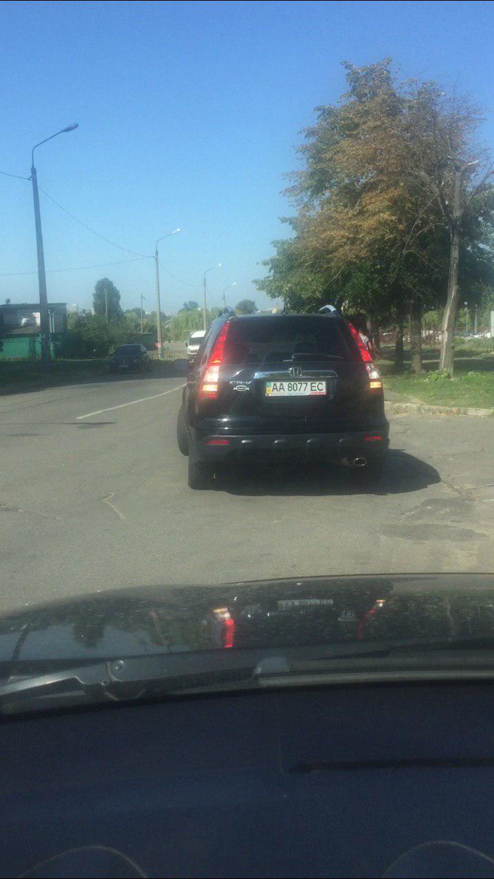 Не думаю, что на газоне хондовод больше помех движению создал, чем выше на фото Аутлендер, запаркованный прямо на перекрестке на полосе движения