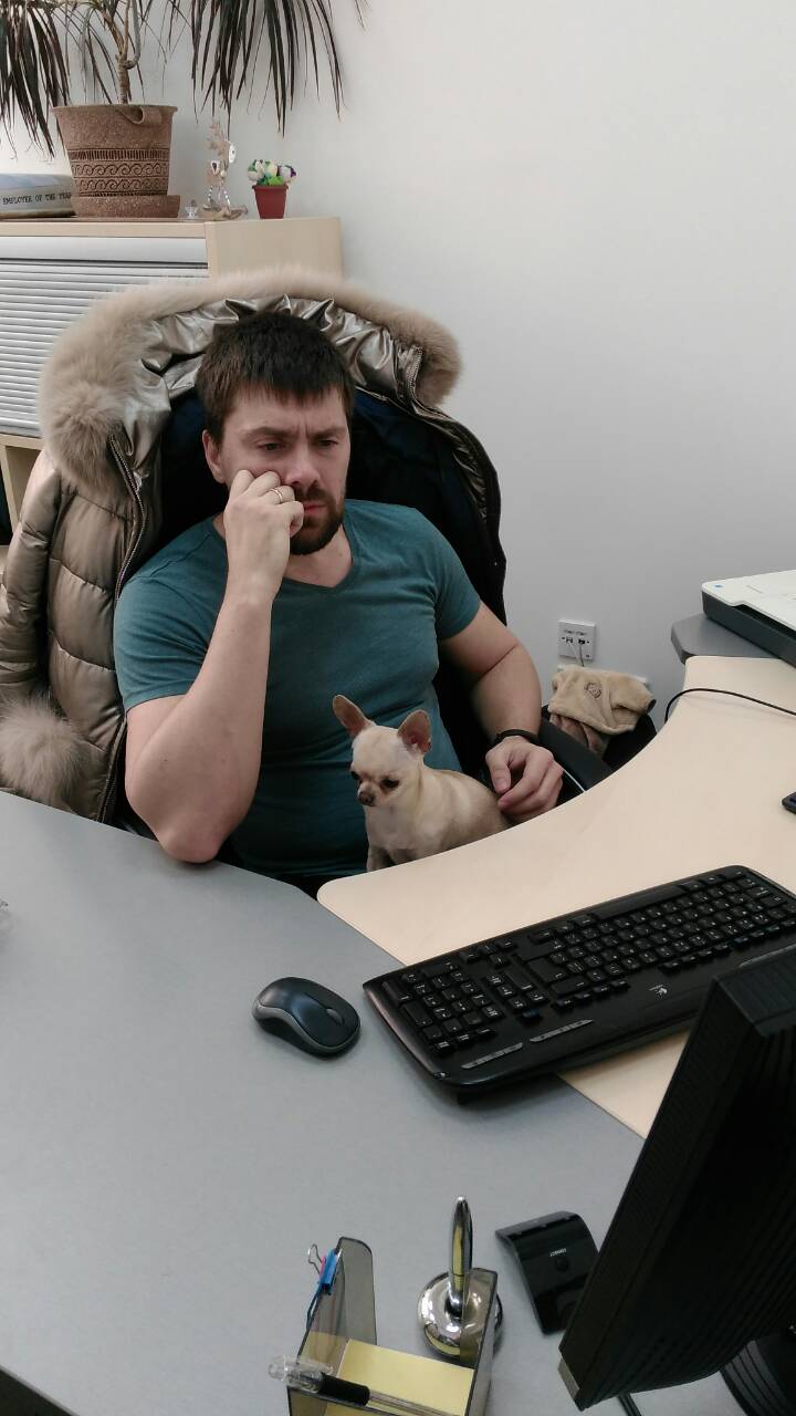 Это же кардинально разные собаки по уходу и пропитанию. После появления немца перестроится вся жизнь. После йорка совсем немного. Вот сегодняшняя фотка из офиса. Вы бы так смогли с немцем?
