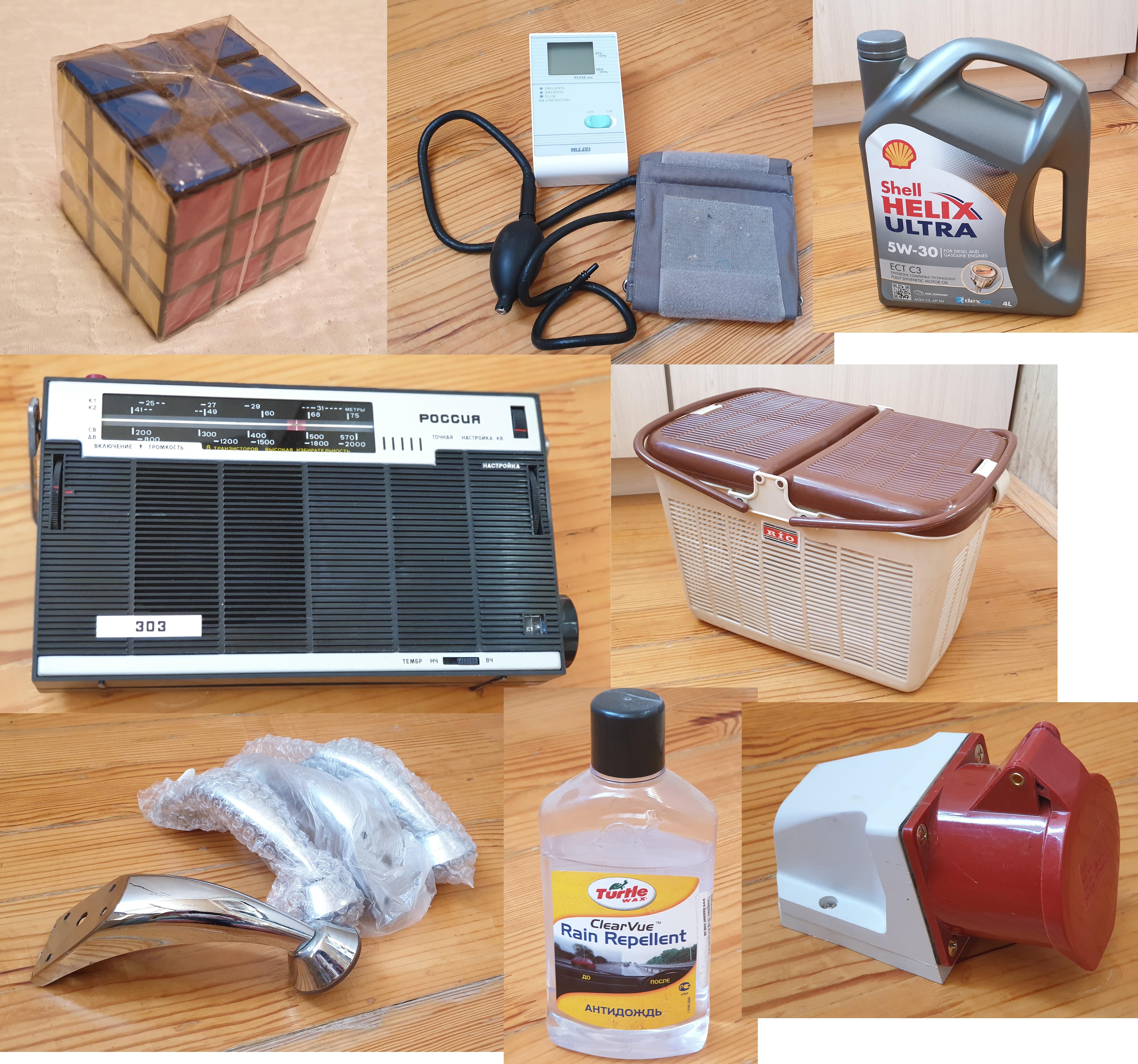 При наведении подобия порядка на балконе обнаружились разные вещи, которые зря лежат и занимают место. Отдаются безвозбеддо, то есть даром. 1. Кубик Рубика новый запечатанный 2. Тонометр. Блок рабочий абсолютно, потрескались шланги на манжете, подтравливают. 3. 0,5 (примерно) литра масла Хеликс Ультра 4. Радиоприемник с нецензурным названием россия. Ему много лет, но никто его не использовал 5. Переноска для котов. Состояние новой. 6. Комплект новых ножек для мебели (силумин) 7. Антидождь. Нормальный, но мне не пошла сама идея. 8. Силовой разъем, новый, изменилась концепция.