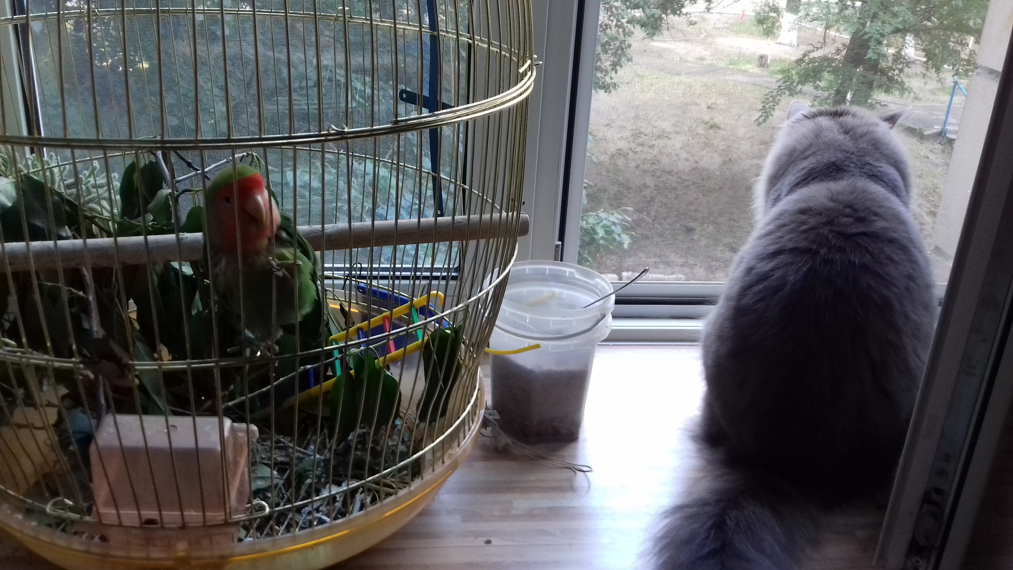 Но у нас есть охотничий кот, не хотелось бы портить психику ни ему, ни птичке... да и себе... и ещё эта тварьынка, если действительно хочет куда-то попасть, открывает дверь за ручку. Искать птицу покрупнее? Завести коту рыбок? (;