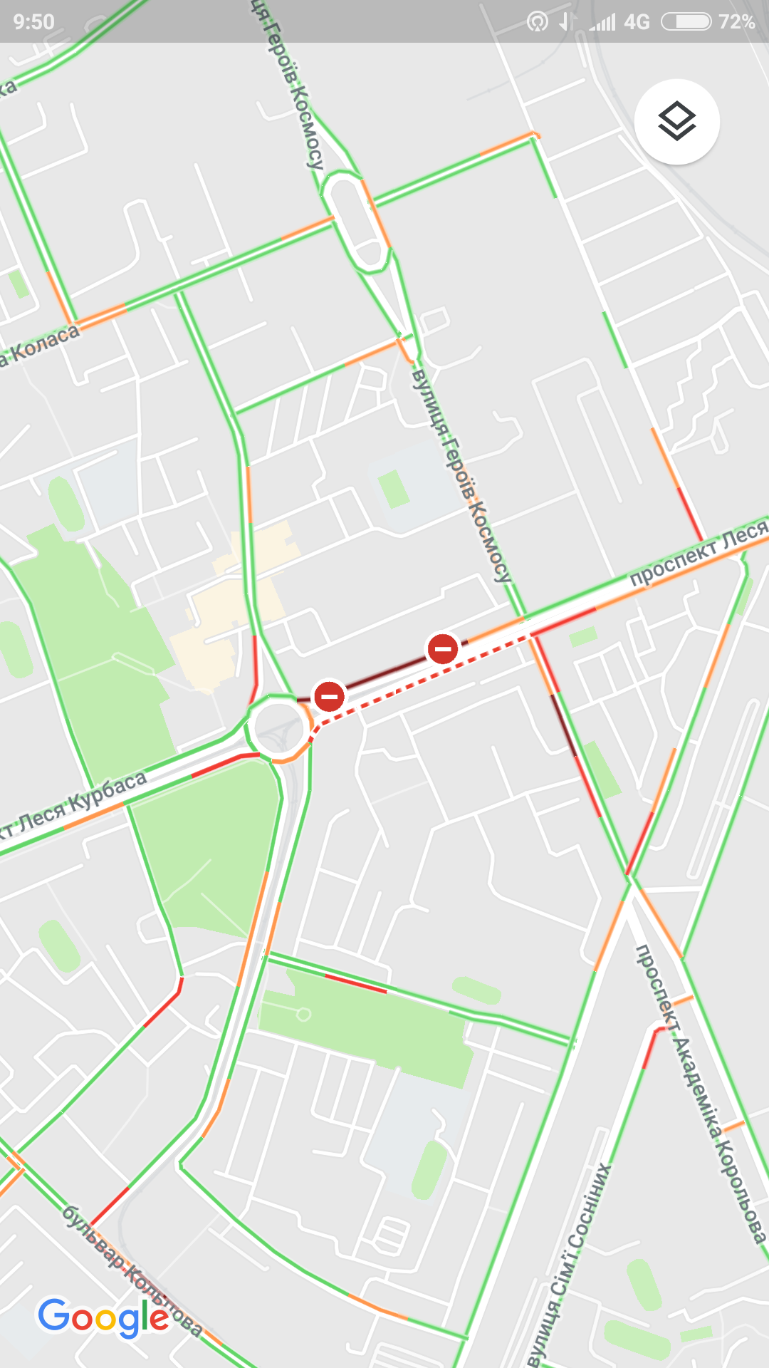 Я имел ввиду пробка по Курбаса почти от Кольцова и до круга колибриса.