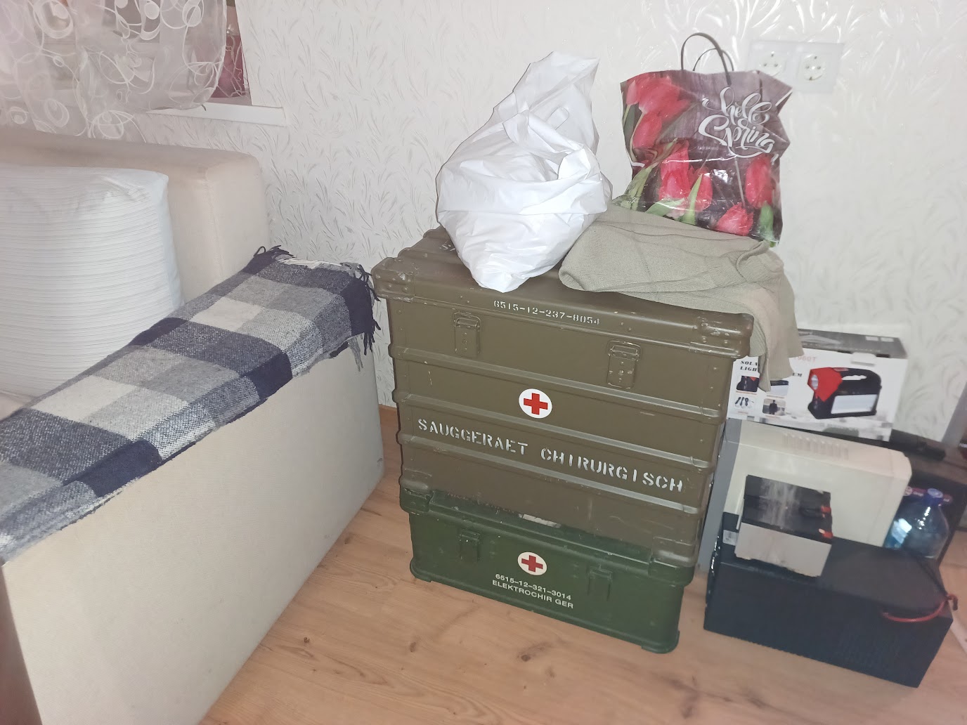 А это мой оперативный запас... Тоже есть вода, консервы, немного енергетиков, газ, горелка и т.д. Плюс немного мыльно-рыльного