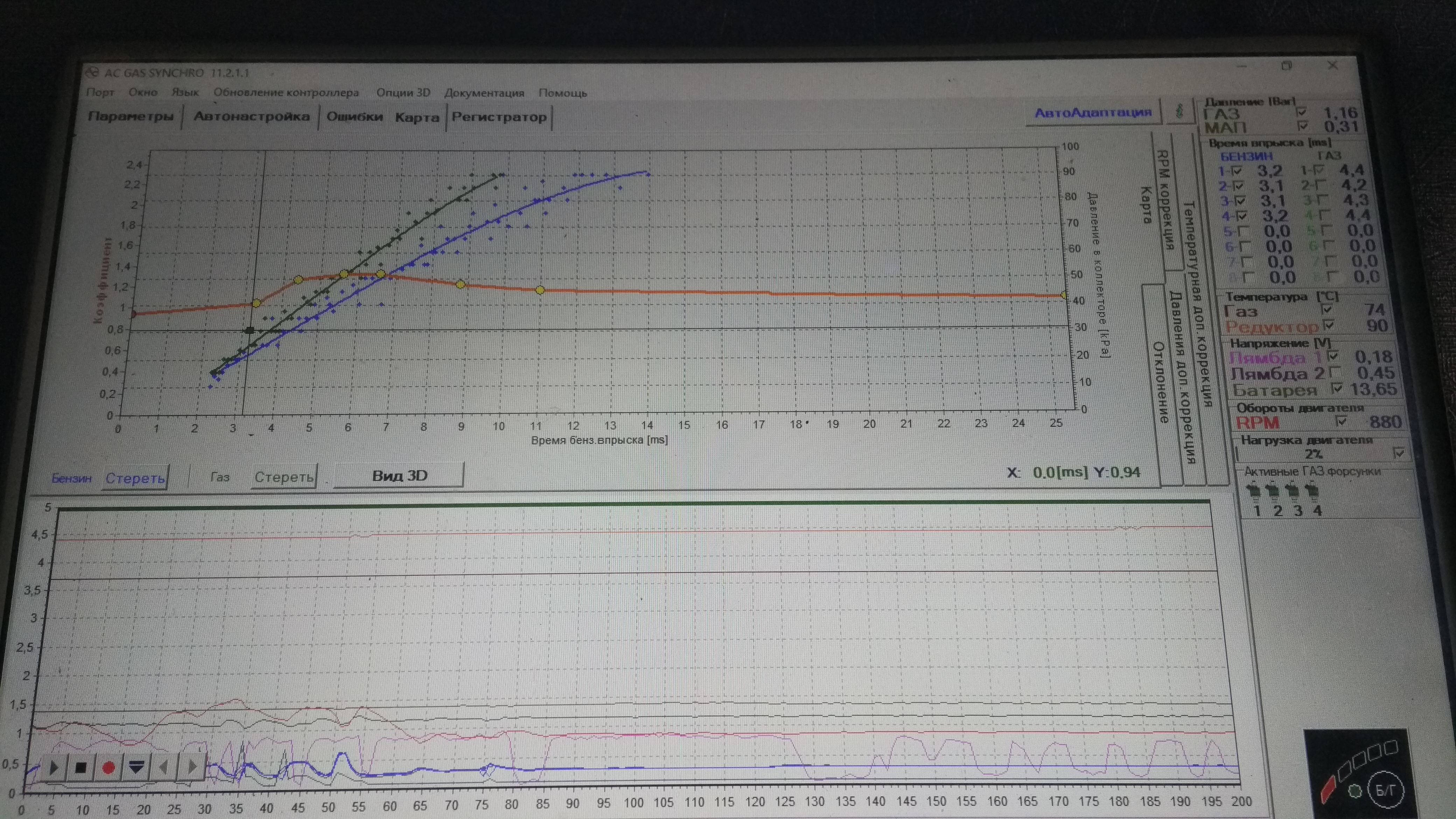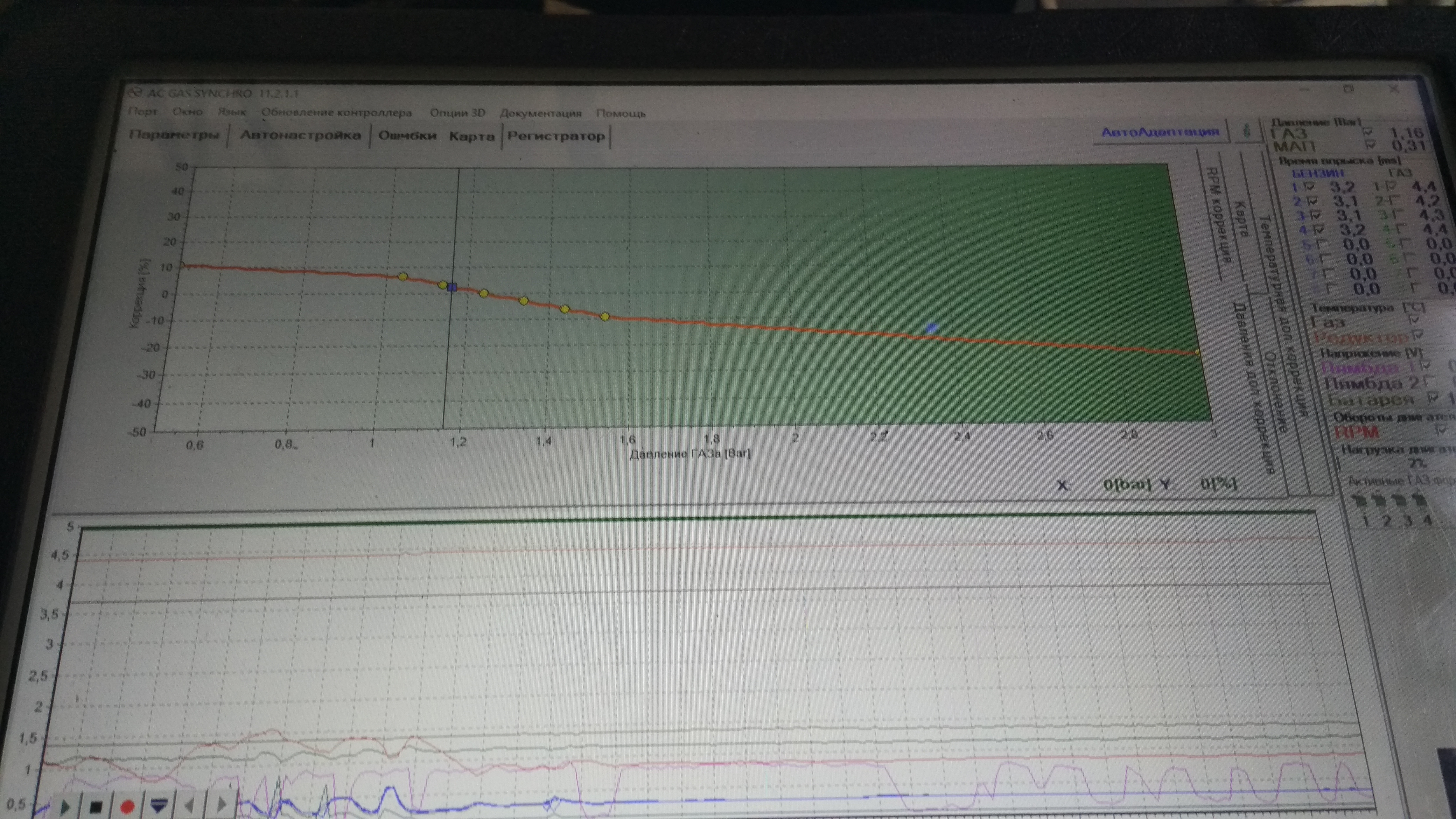 Кто может прокомментировать почему так с графиками выходит? Это подстроил газ по тримам. Редуктор давление держит стабильно. при тапке в пол может на 0,2 просесть. Жиклёры сейчас 2.5мм. Но думаю их совсем выкрутить сегодня.