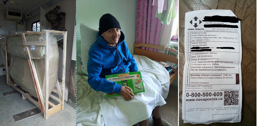 Минус 530 грн. оплатил за доставку госпитальной кровати (остаток доплатили БФ СВОЇ), которую отправили хорошие люди из Германии через Ужгород, для нашего бойца, который обездвижен после тяжелого ранения уже два года и которому я помогаю... Надеюсь, Вы не против?