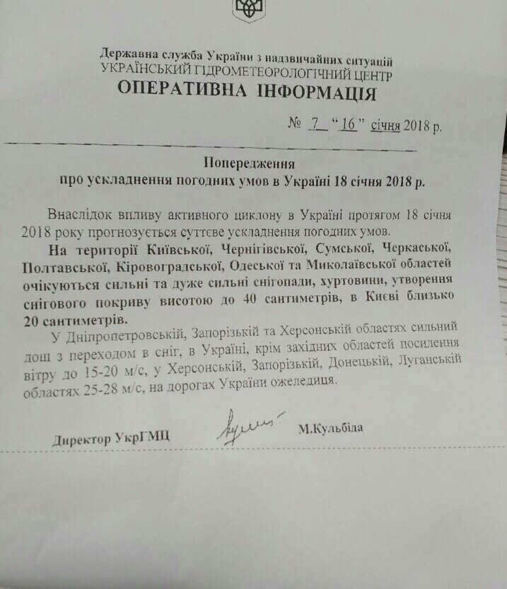 У Київській області очікують сильний мокрий сніг, посилення вітру до 15-20 м/с, хуртовини, місцями налипання мокрого снігу, на дорогах ожеледиця, утворення снігового покриву висотою 10-20 сантиметрів. страница