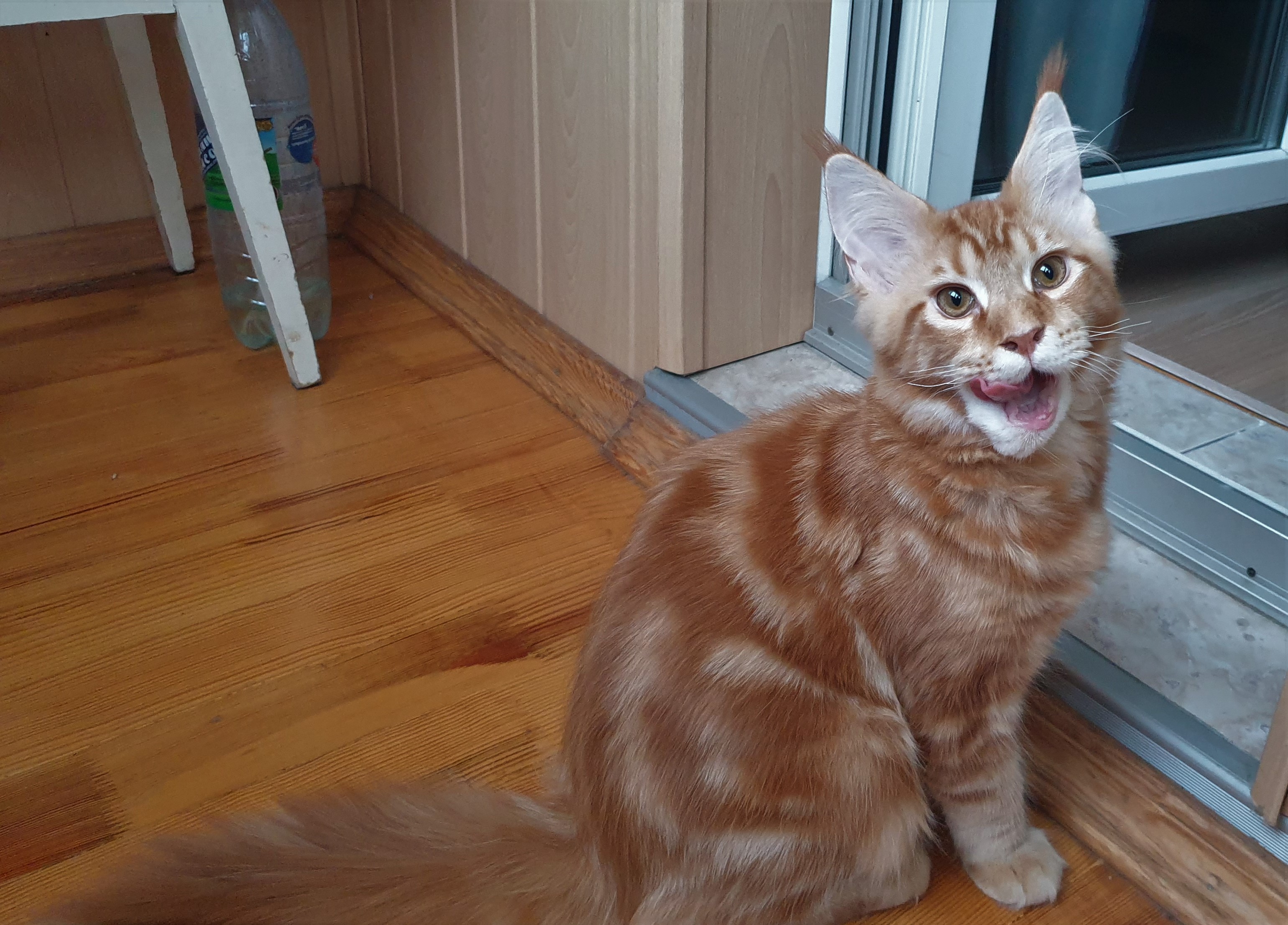 Показал фото кота сотруднику (кошка у него имеется) Спрашивает, сколько ему? Отвечаю - почти 5 месяцев. Он - да Вас нажухали, взрослого кота за котенка продали Не, говорю, крупняшка просто, мэйн кун, обещают до 10 кг включительно, со временем. Лежит сейчас на моем подоконнике и дрыхнет. Позавчера ходил потерянный, обнюхал всю квартиру до последней мелочи. А сегодня уже помогал мне носки одевать Я натягиваю, а рыжая морда его стаскивает. Жизнь повеселела.