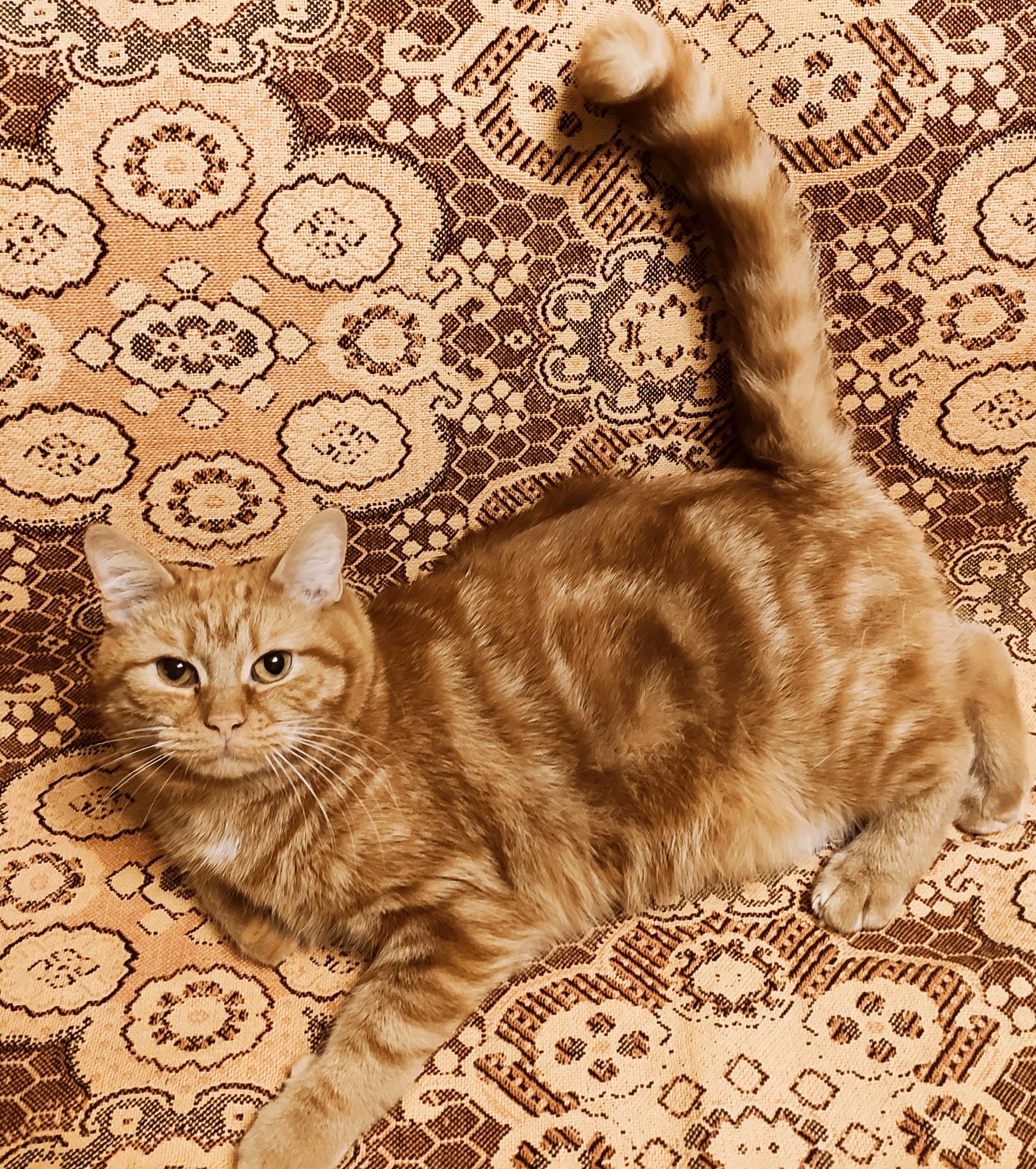 Та да, тем более что кроме цвета этот похож на Карнушу покойную фактурой - лохматый, с кисточками на ушах, разве что взгляд не прокурорский а шкодливый