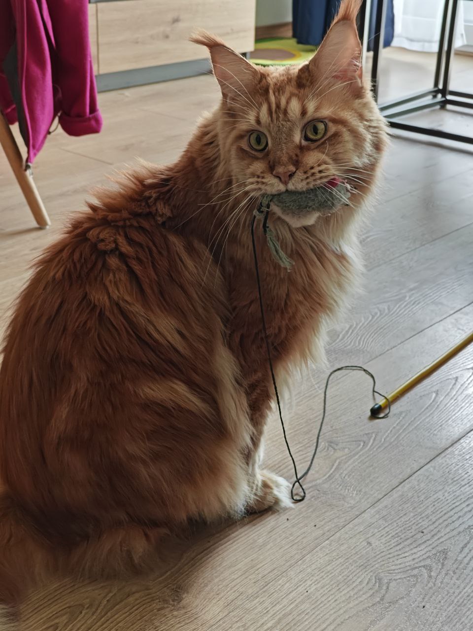 В части балования кота мы, конечно, не отстаем, но лидерство среди игрушек годами прочно держит дешевая искусственная мышка на резинке с палочкой. Механизм игры разработан до мелочей. Котом, понятно. После успешной поимки добычи она никогда не отдается хозяину. Просто никогда и ни за что. Палочку следует отпустить, мышь вместе с палочкой утаскивается в соседнюю комнату. Потом, если сидишь за компом и забыл про игровой процесс, тебя вдруг постукивают лапами по плечу, тихонько говоря "ау-у". Это означает, что мышка с палкой принесена и лежит у ног. Вэлкам!