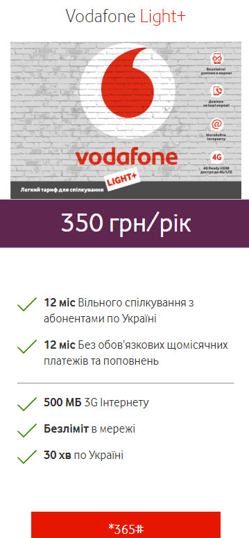 Всем большее спасибо! Не заметил, что Лайт на сайте Водофона на отдельной кнопке