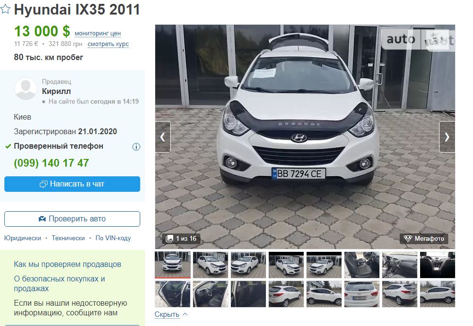 Вариант 1: Hyundai IX35 2012 13 800 $ 22 тыс. км пробег