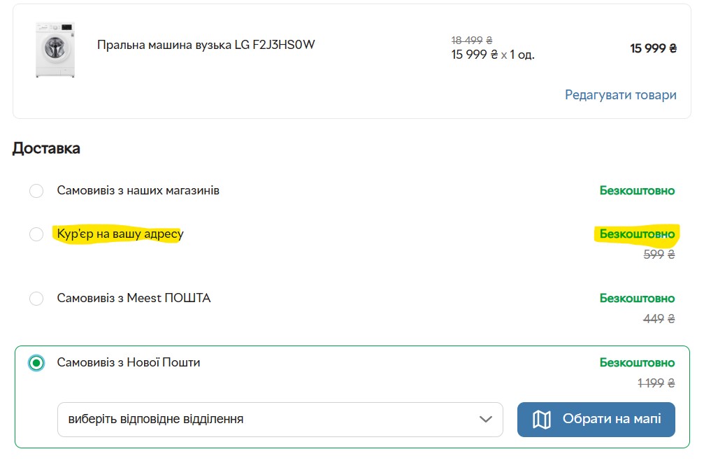 Пральну машину, посудомийну машину, холодильник, телевізор, ... мені треба не в поштомат чи під під'їзд мого будинку, а безпосередньо в квартиру. І якщо такої послуги немає, то я в такому магазині ніколи нічого з переліченого не куплю. Тим більше що ціна в розетці на усе перелічена буде як мінімум не нижча, ніж можна знайти в Києві. І є чимало торгових мереж які безкоштовно, або за розумну суму доставляють саме в квартиру.