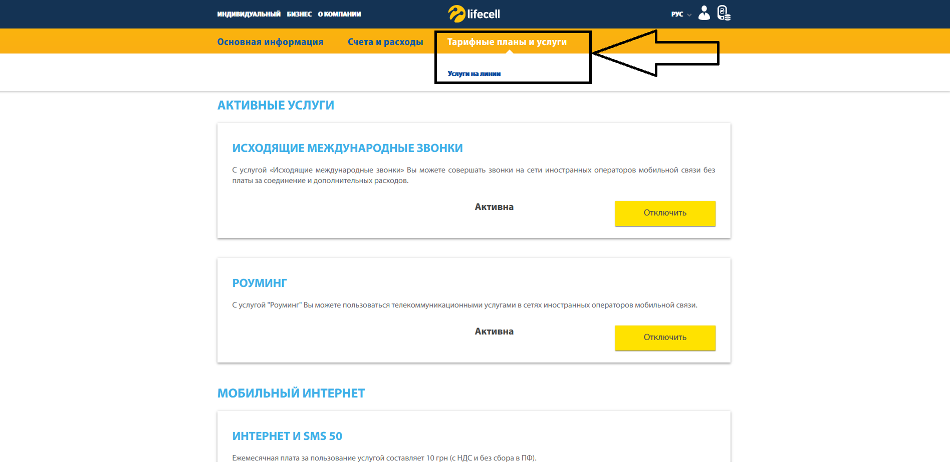 У мене, походу, така функція не доступна. Можна підключити тільки додаткові послуги до існуючого пакету і все