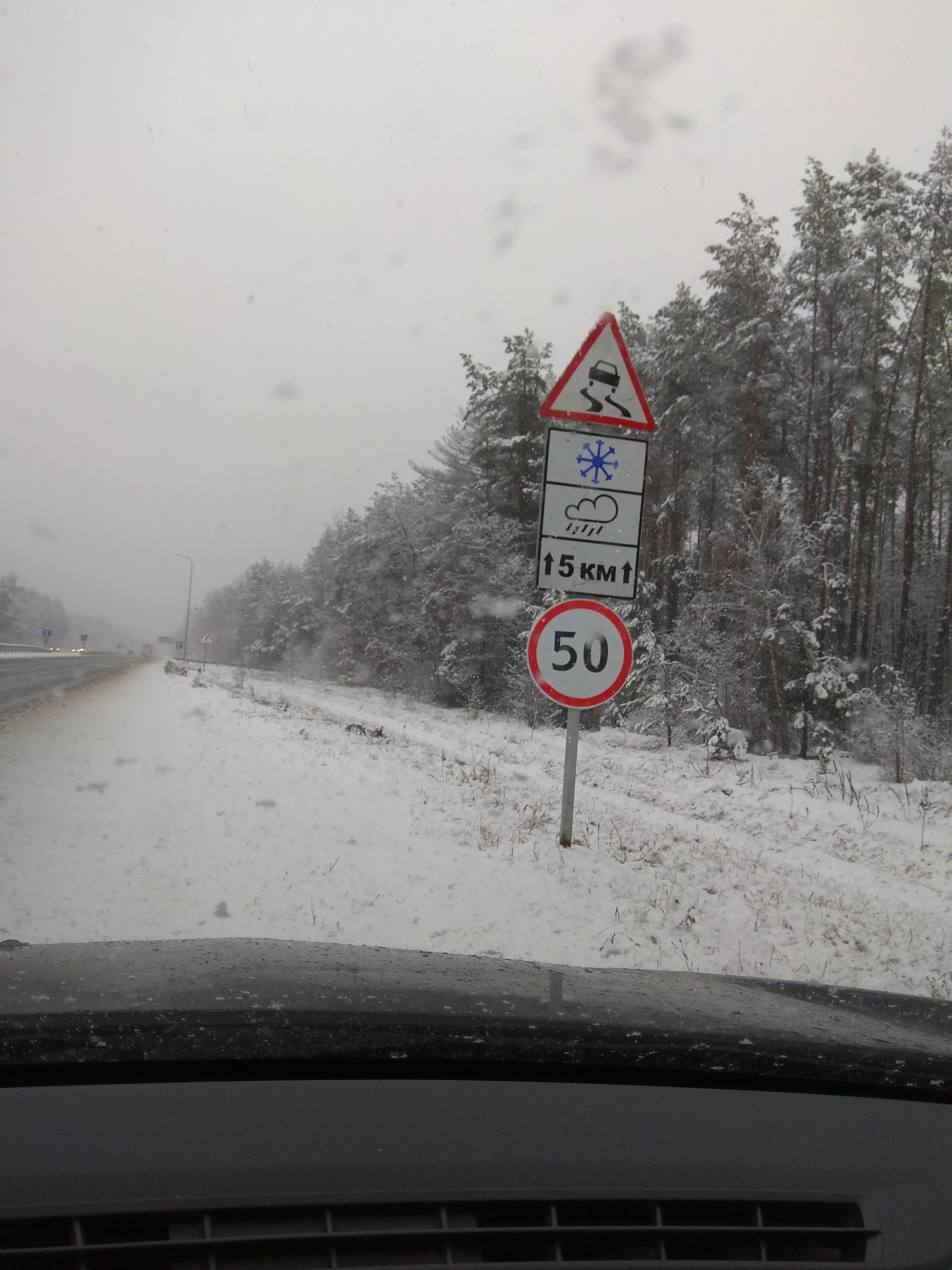 Если опасности нет, то и ограничение уже не действуют. Только чую, разводы от неизбежны. Интересно, что до Житомира знаки 50 висят в самом низу, как на фото, а после - уже над табличками.