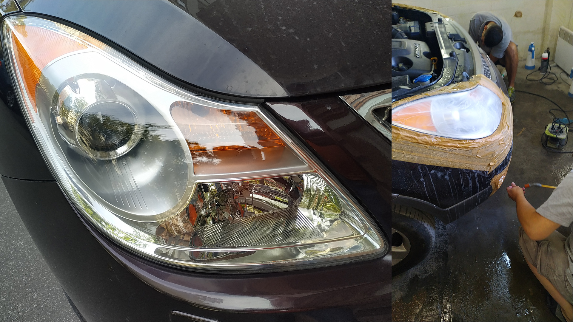 Полирнул и поклеил передние фары и противотуманки. Клеили виниловой антигравийкой. Получилось 2500 за все. Правую сторону переклеивали Попали песчинки.