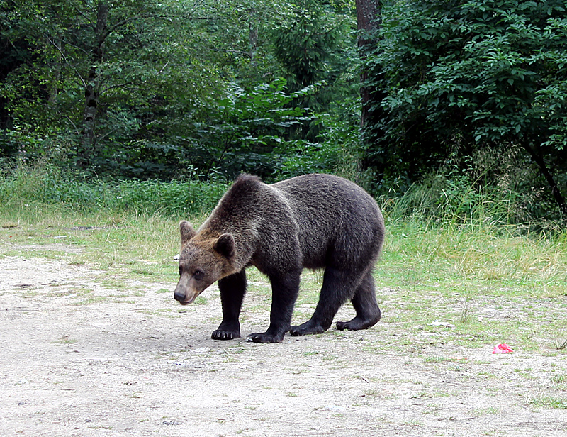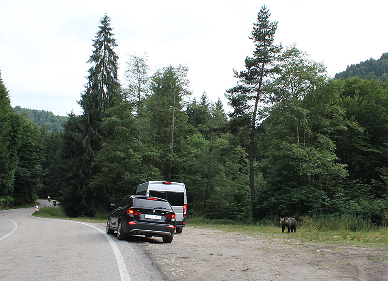 Этот медведь приловчился еду выпрашивать у проезжих. Ну, и может, турист какой зазевается )))
