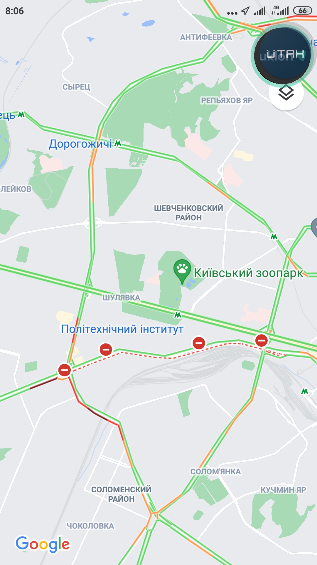 Гугл показывает полное перекрытие Борщаговской в сторону центра от инд моста. Что там делают?
