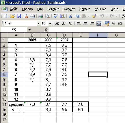 Mitsubishi Lancer 1.6 /2005 В среднем летом 7,5 литра. Тест долгосрочный на протяжении 15 тыс.
