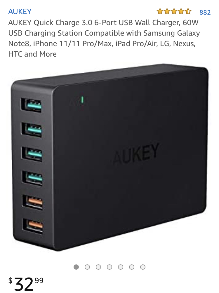 В ідеалі це має бути коробочка з трьома (максимум - 4) виходами USB-A на невеликому гнучкому шнурі, що втикається в 220 (але якщо буде прямо в розетку - я переживу). Заряджатись будуть два телефони і, можливо, якась дрібнота