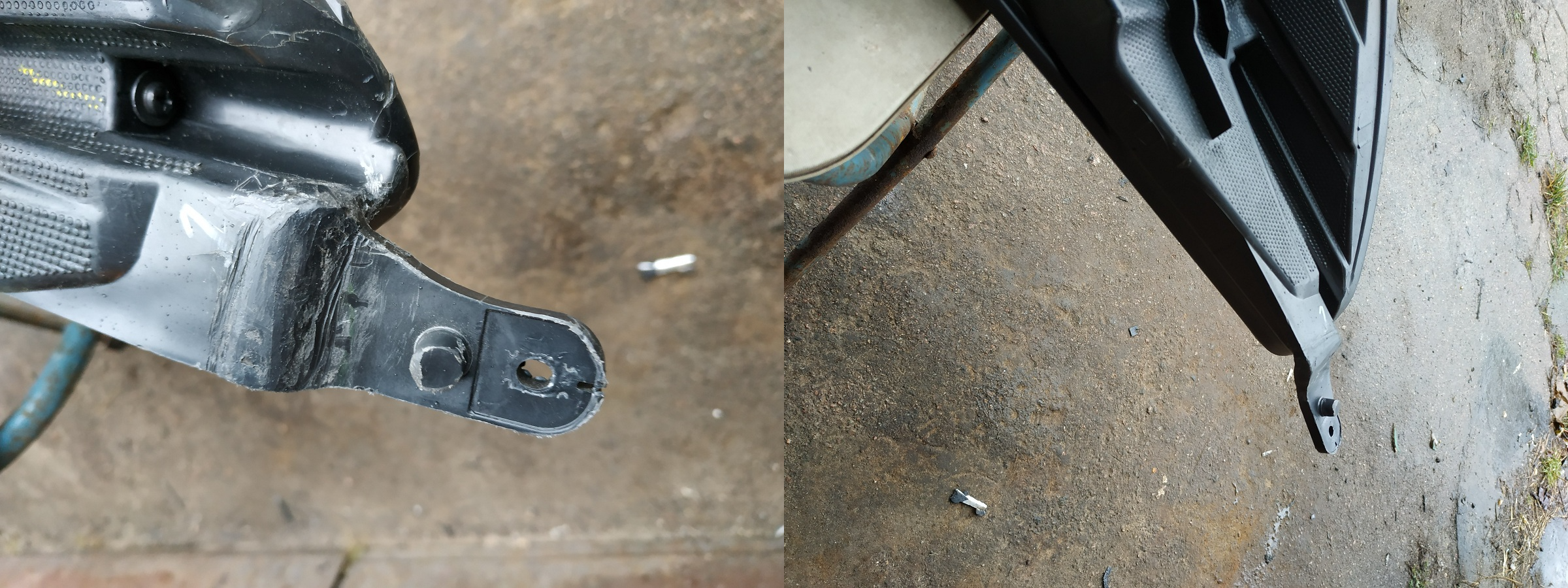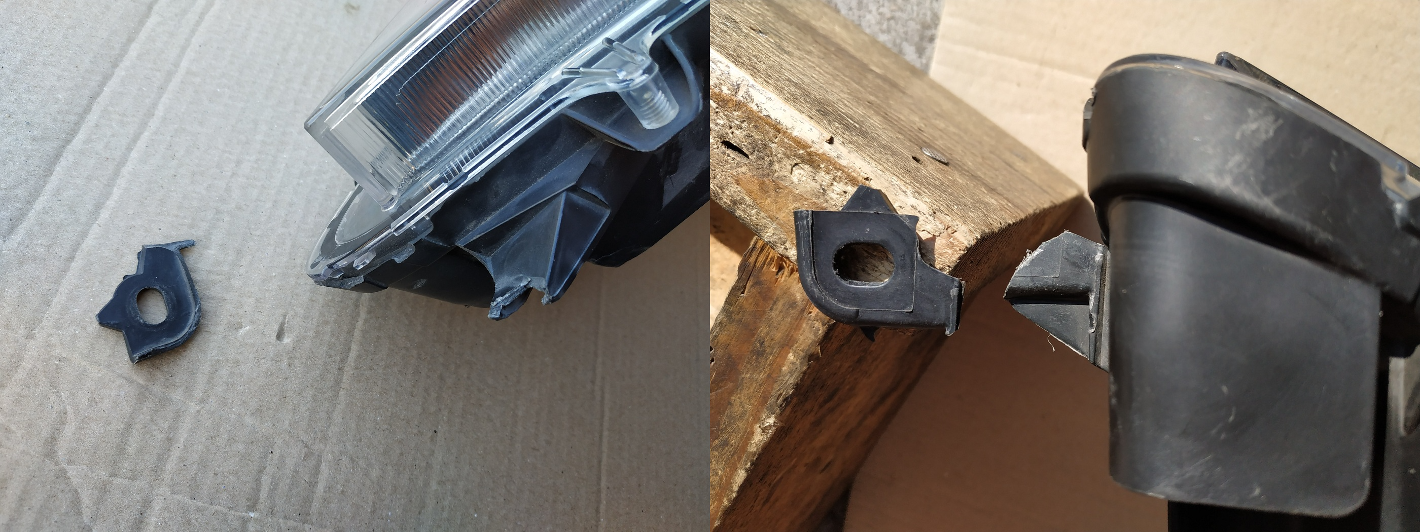 Ну и как обычно, несколько фото для примера. Для начала, угол фары, у которой как раз кронштейн крепления с изгибом и собственно отломанное от него ушко крепления.