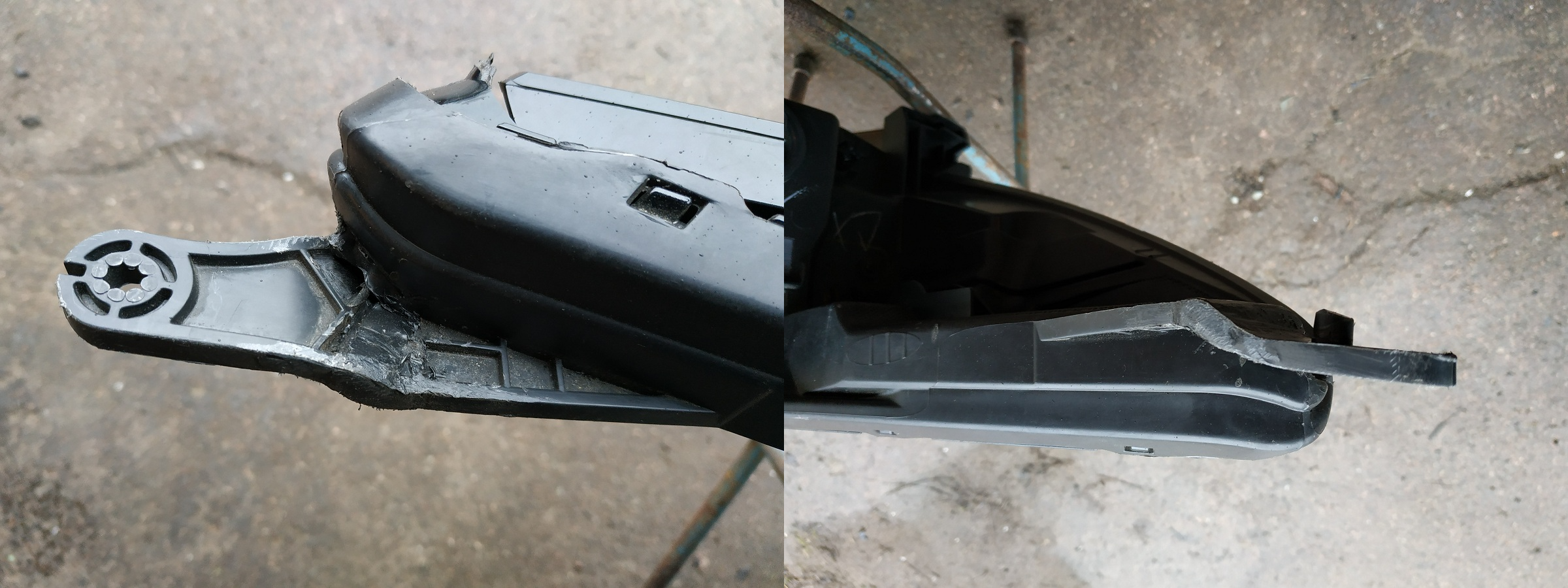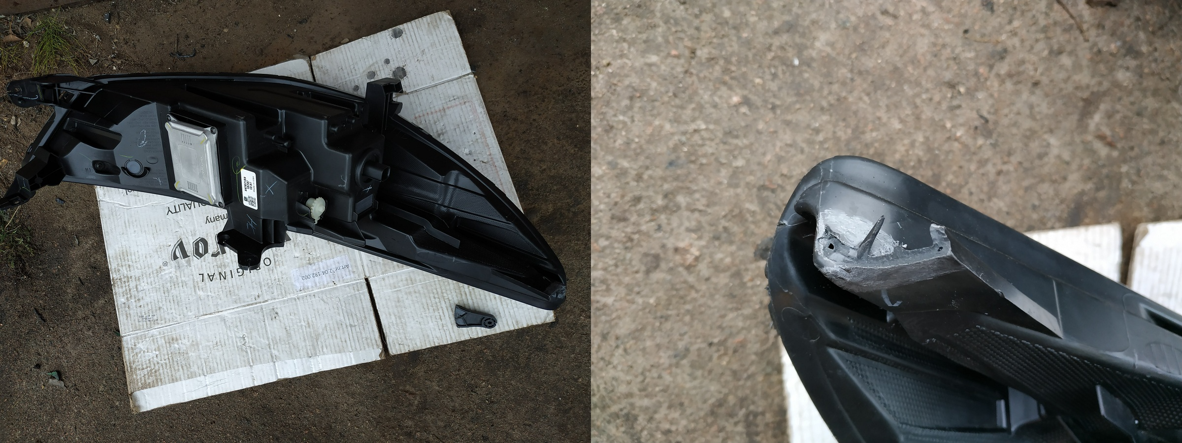 P.S. На фото я показал, в каком виде приехали упомянутые выше фары. И как они должны были выглядеть с целыми кронштейнами крепления. Но это уже только после ремонта.