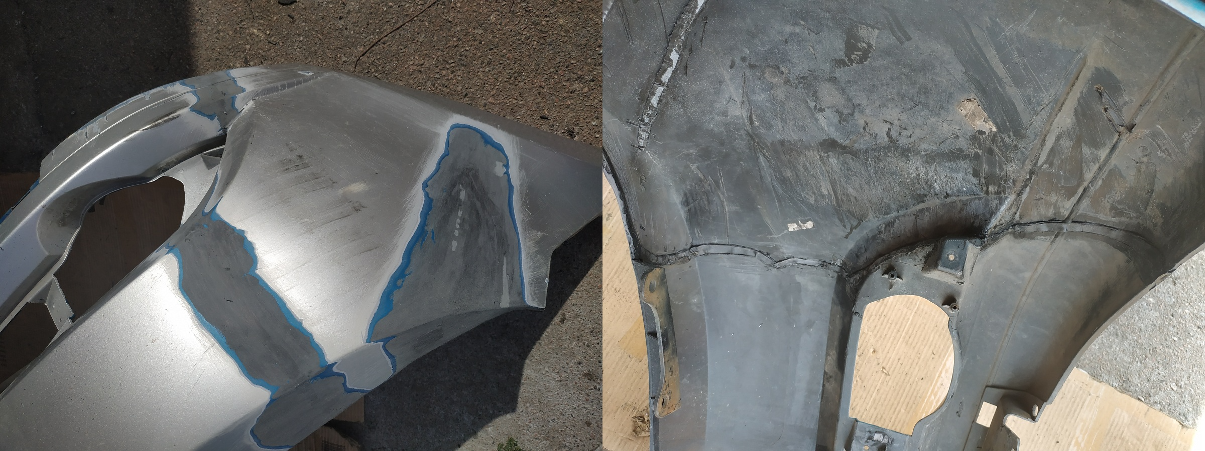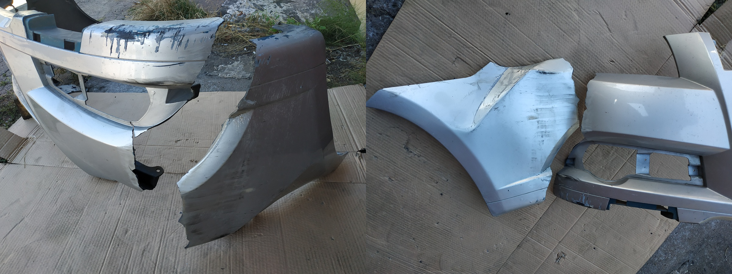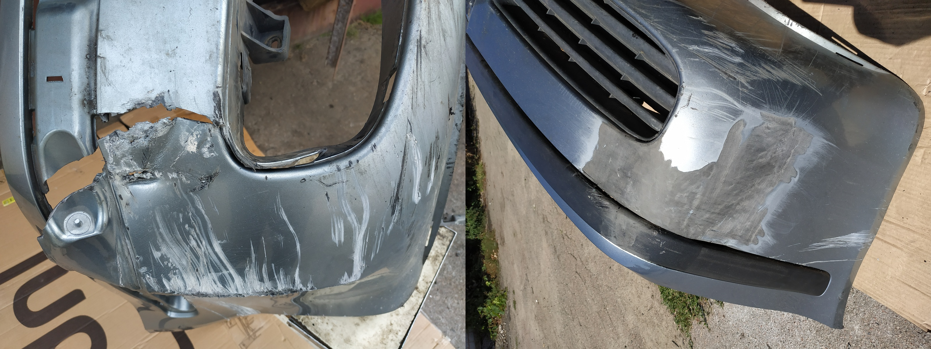 Нашел в своем архиве фотографию повреждения бампера на Шкоде Октавии. В чем-то немного напоминает повреждение на вашем авто, только еще похуже. А на следующем фото видно, что получилось в итоге. И это еще не было окончательной доводки под покраску. Правда у Шкоды отличный материал бампера, который прекрасно рихтуется и варится. Но надеюсь и француз будет не хуже.