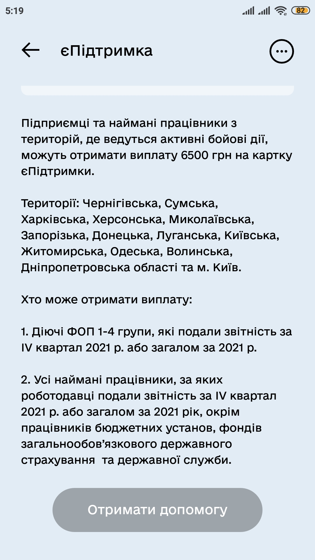 Да, техподдержка Дии - это дно. Позавчера пытался у них узнать - почему выплата недоступна ( в дие указано что я там какието проверки не прошел и мне не положено) - что они только не мололи. И дайте нам такие скрины и такие, в конце концов сказали чтоб я обращался в пенсионный фонд. ФОП - регистрация Буча, в пенсионный ниче не платил никогда - все в налоговую. В итоге кнопка сегодня сама стала активной. Нажал, жду.