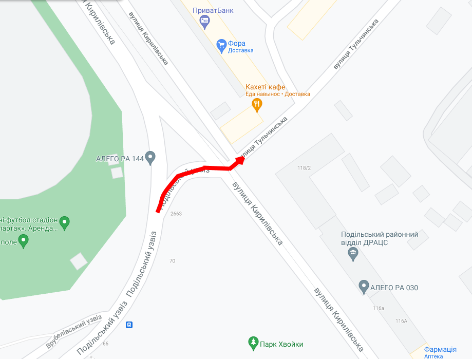 Ехать на Тульчинскую под картонку, как-то немного не правильно. Ведь там нет поворота направо, а почти под прямым углом нужно ехать, пересекая Кириловскую.