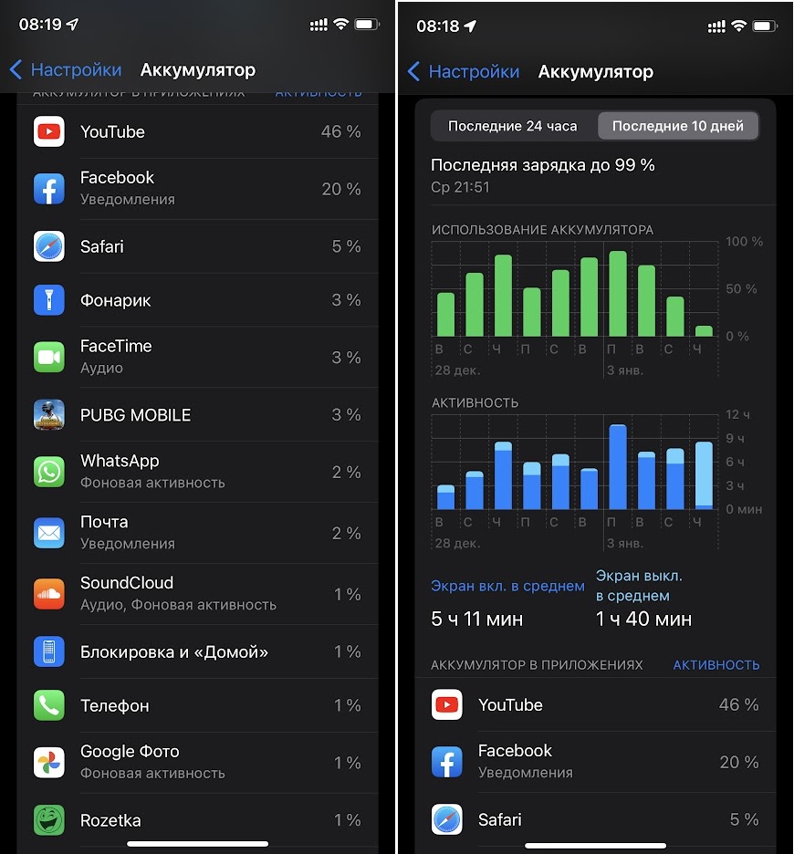 11pro, vodafone (sim) + lifecell (esim) + иногда вместо lifecell - esim от airalo для интернета в роуминге. На всех картах всегда вкл. передача данных - на заряд никак не влияет.