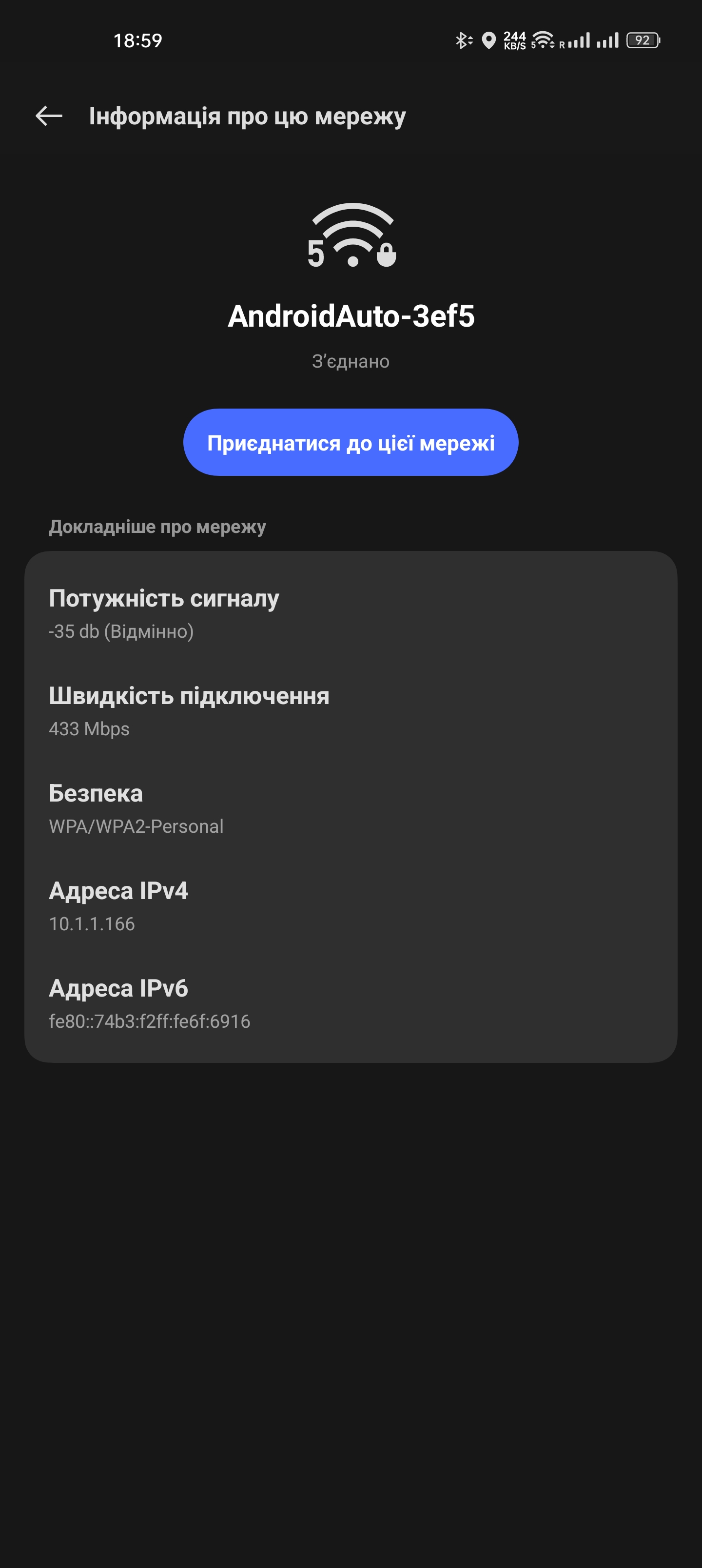 Ну і наостанок, зробив скрін, як вайфай у мене знаходиться в суперпозиції, одночасно і підключений і не підключений (є кнопка підключитись). Навіть не знав, що Андроїд таке вміє.