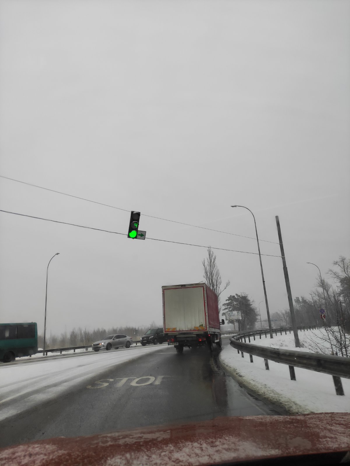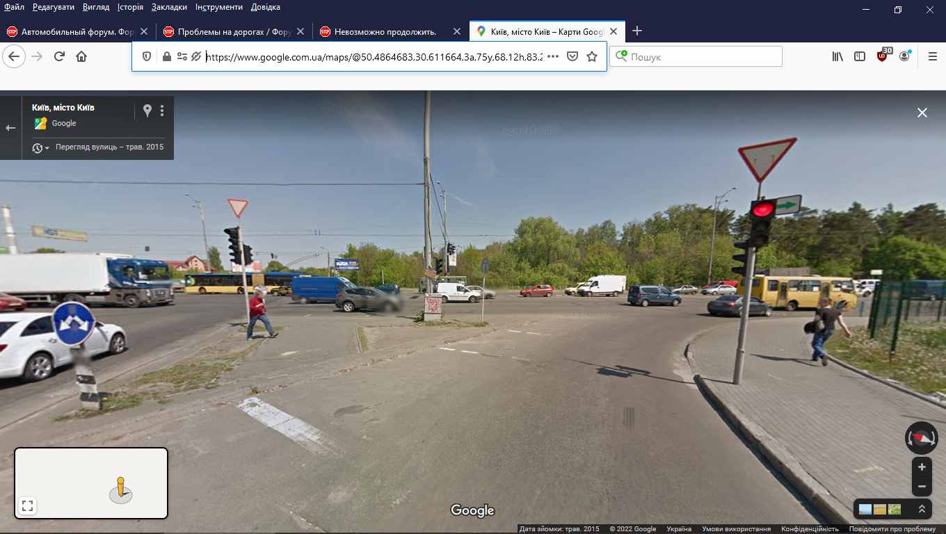 В первом сообщении, скорее всего фото перекрестка Варшавки и поворота на Забучье. Там нюанс в том что перекресток в виде трехлучевой звезды и это немного дезориентирует. Так по памяти не помню чтоб были проблемы с проездом. Мож, ракурс такой с камеры, или светофор "сьехал".