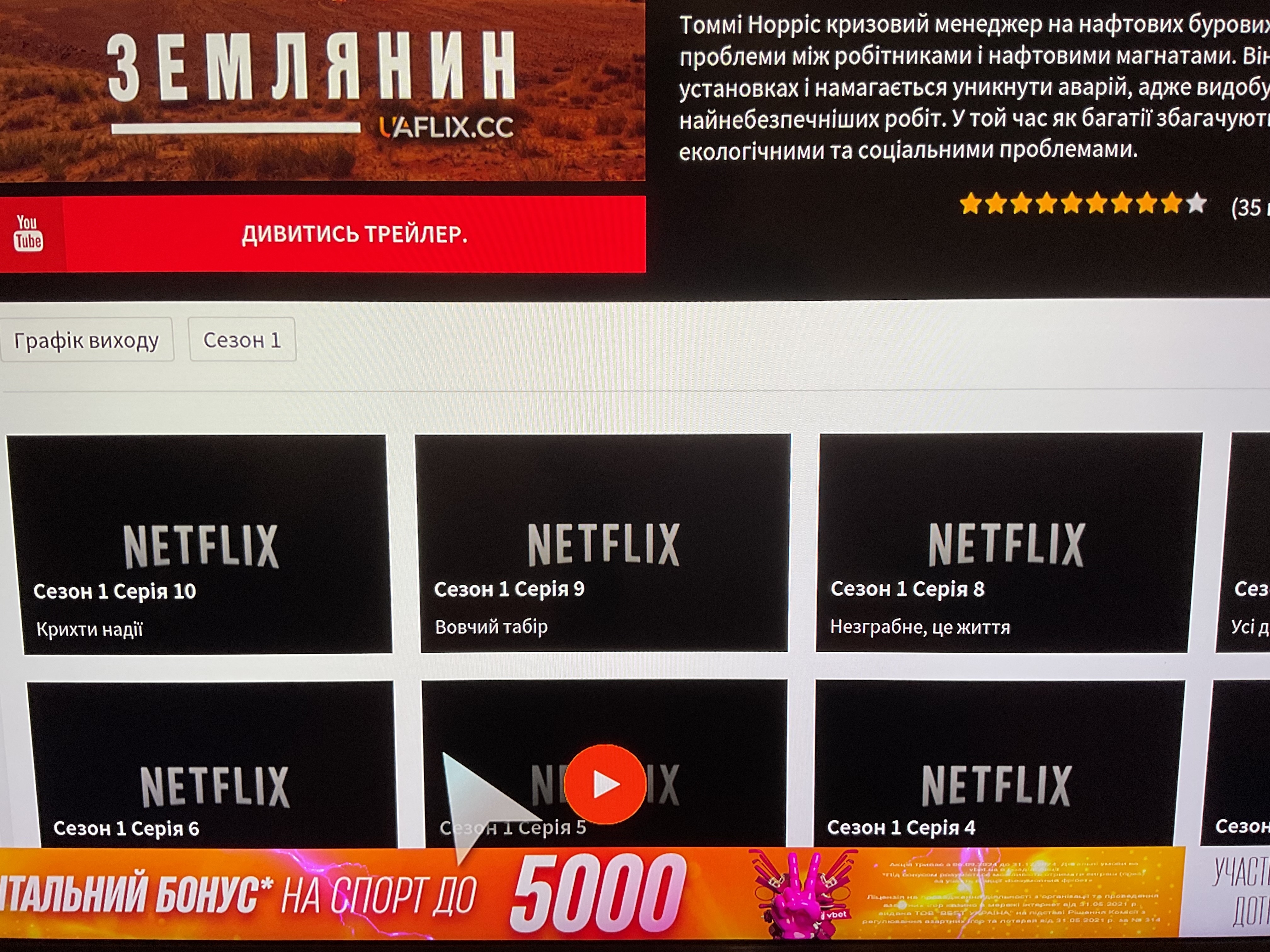 А от цікаво на заставці нетфлікс( як на фото) а на самому нетфліксі серіалу такого нема?