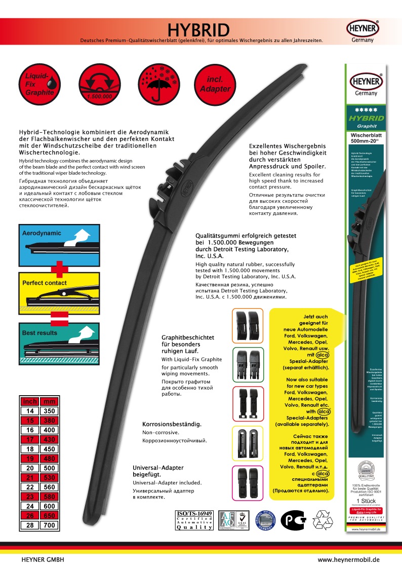 Уважаемые коллеги, старая тема ушла в небытие, в связи с войной похоже Но- склад начал работать. Отправка ТОЛЬКО Новой почтой сейчас. В продаже бескаркасные щётки стеклоочистителей Heyner All Seasons и гибридные Heyner Hydbrid, практически всех размеров, под любые автомобили, размеры от 330 до 800мм. Производитель: HEYNER GMBH, Германия. Цены по запросу.