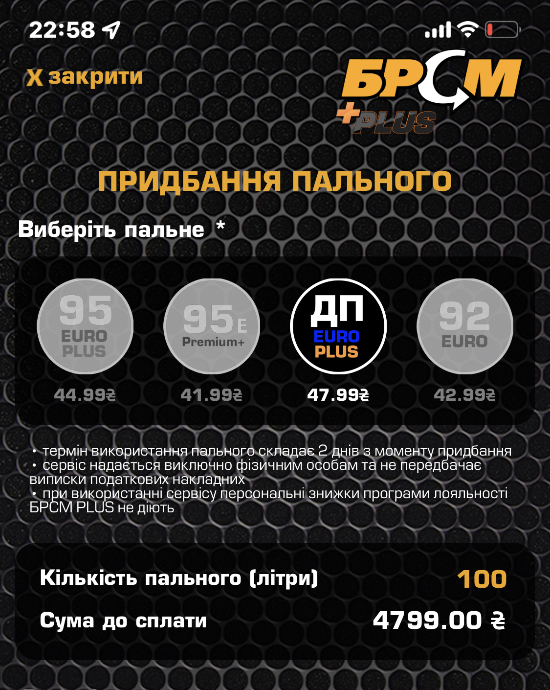 На сьогодні можливо купити дизельне паливо у додатку БРСМ за ціною 47.99. Нічого так.