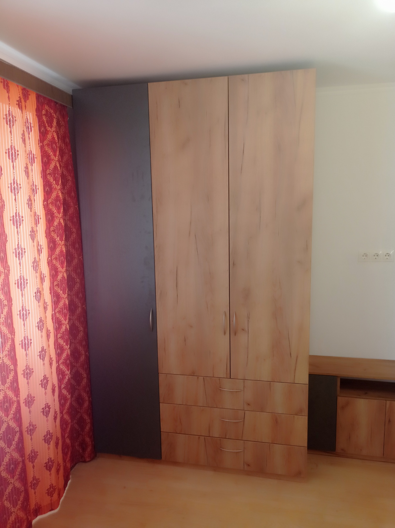 Шафа в кімнату Каркас ДСП Кроношпан Дуб Крафт Золотий 18мм Крайка по периметру Фасади ДСП Кроношпан Дуб Крафт Золотий 18мм Фасади ДСП Кроношпан Графіт 18мм Крайка 2мм + ПУР клей Задня стінка ДВП Кроношпан Білий 3мм Ніжки Маехеттен 50мм Швидкозйомна фурнітура Хетіч Завіси Мюллер з дотягувачем Направляючі прихованого монтажу Мюллер з дотягувачем.