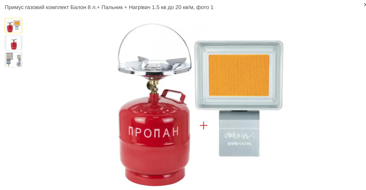 Я греюсь. Не точно таким , но такого типа. Толькр сам обогреватель помощнее и балон композитный. Металлический применять в жилых помещения не реккомендуется.