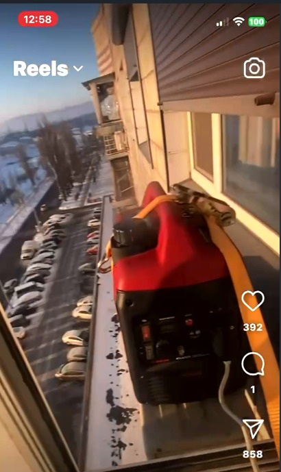 в мене в домі на першому поверсі перукарня то коли вони вмикають генератор то на них скаржаться сусіди що їм воно гучно диркає, а ще ж його треба до чогось привʼязати що б не втік ну і важить він теж нормально що б його самому в авто закинути це я про генератор десь на 3/3,5 кВт а не оті лушпайки по 1 квт