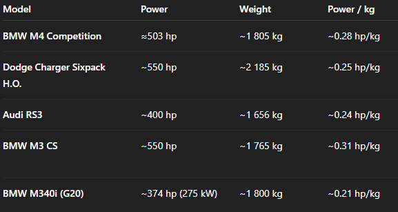 Цікаво, як у Доджа вийшло зробити настільки повільне авто з 550 кс. Мені дуже цікаво було б замість RS3 там M340i побачити, щось підказує, що результат був би достатньо близьким.