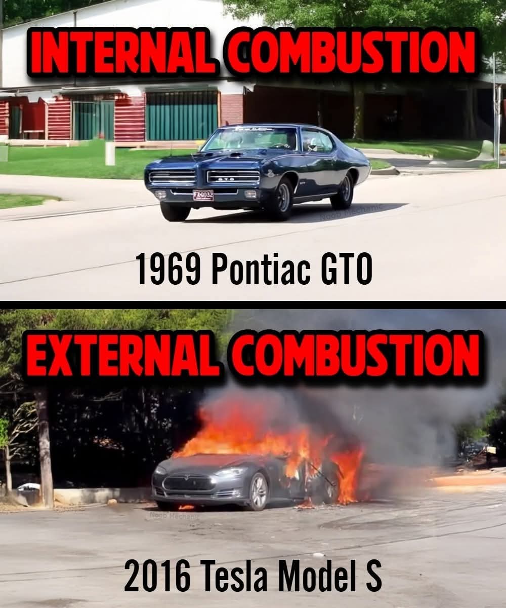 і що там ржачного? черговий фейк. на справді повинно бути навпаки. бо згідно статистики страхових компаній в США як раз двс авто на порядок більше страждають пожежами.