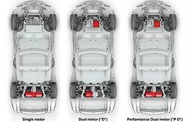 Старі Ски були передньоприводними за замовчуванням, і їздили на меншому моторі, який був більш енергоефективний ніж задній, бо був менший. Станом на зараз всі тесли задньопривідні, і підключають передній в разі потреби, а не навпаки. Платформа Model 3/Y була задньопривідна одразу, S/X перейшли на задньопривідну концепцію з 2019 року з появою в них моторів на постійних магнитах.