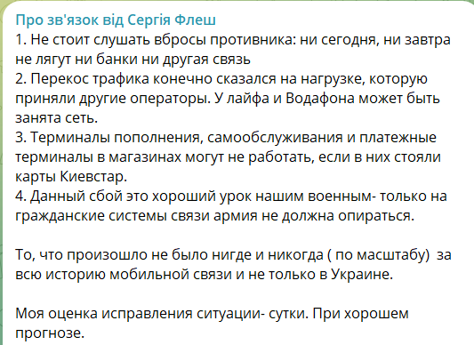Там же, в телеграмі, писали що це - вкид. Чи слідчі "забрали з собою всі сервери київстару"?