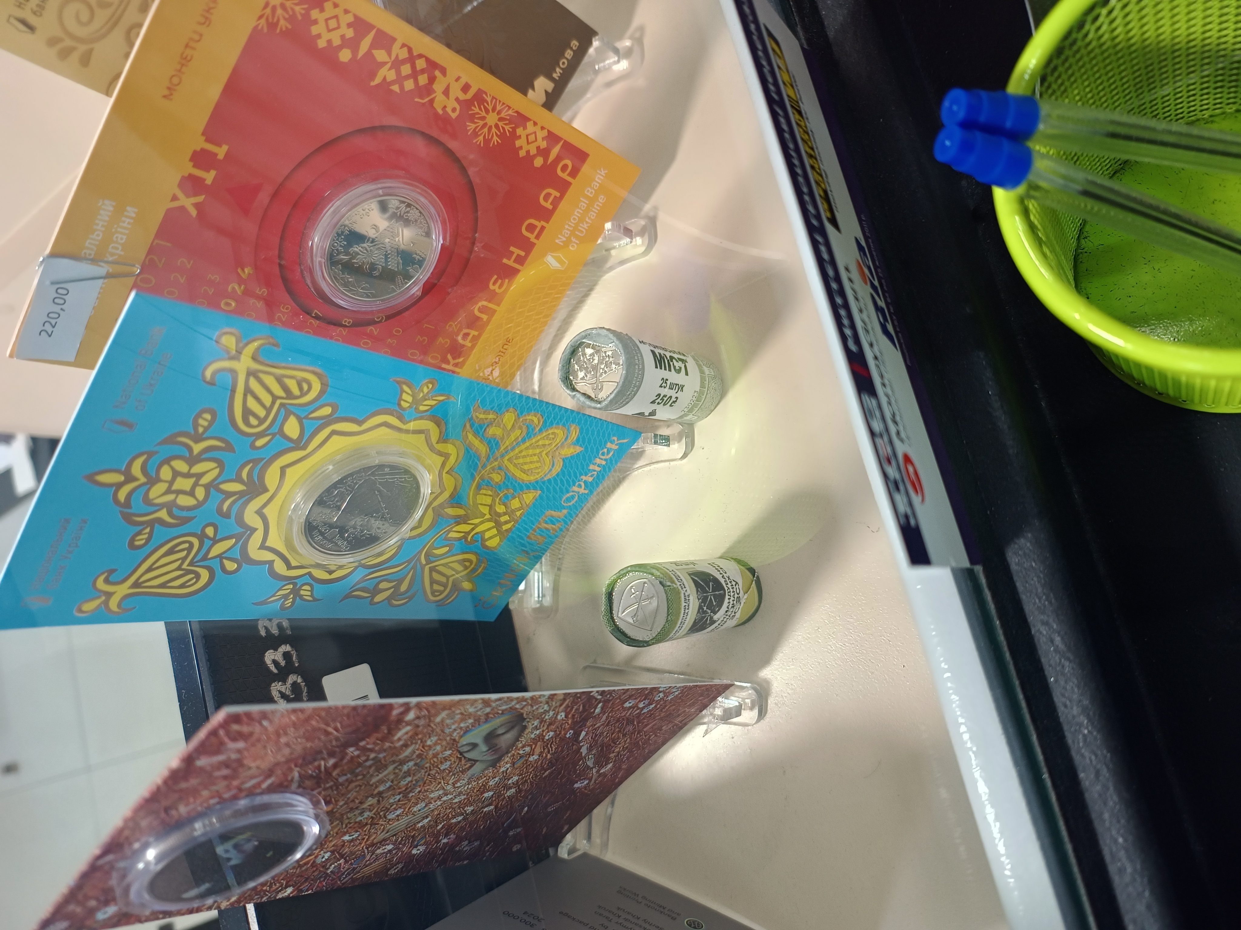та наче всі недорогоцінні (нейзильбер) монетки по 5 грн номінал, і на сайті НБУ вони десь 160-180 грн штука продаються. Ну тут на стійці 220 грн. В інтернетах щє дорожче