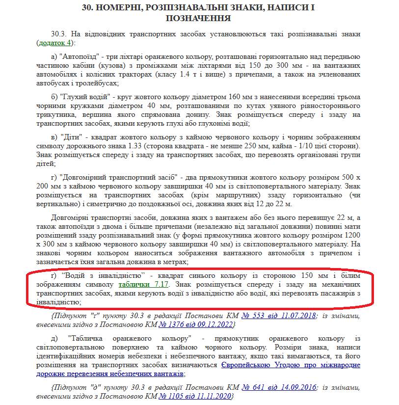 Саме так у Законі про дорожній рух і написано у частині вимог до авто, які використовуються для перевезення осіб з особливими потребами?
